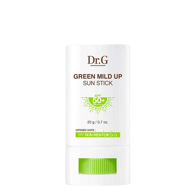 DESCRIPTION Dr. G Green Mild Up Sun Stick SPF50+ PA++++ offers broad-spectrum protection againstUVA, UVB, infrared light, and blue light. Infused with skin-soothers such as the brands patented Young Leaves Complex (containing seven botanical ingredients, including green tea, broccoli, and camellia extracts). Additional ingredients of provitamin D and pycnogenol up hydration levels while boosting skin resilience. Sun stick comes in a reef-friendly formula. Suitable for sensitive skin.DESCRIPTION Dr. G Green Mild Up Sun Stick SPF50+ PA++++ offers broad-spectrum protection againstUVA, UVB, infrared light, and blue light. Infused with skin-soothers such as the brands patented Young Leaves Complex (containing seven botanical ingredients, including green tea, broccoli, and camellia extracts). ADESCRIPTION Dr. G Green Mild Up Sun Stick SPF50+ PA++++ offers broad-spectrum protection againstUVA, UVB, infrared light, and blue light. Infused with skin-soothers such as the brands patented Young Leaves Complex (containing seven botanical ingredients, including green tea, broccoli, and camellia extracts). A